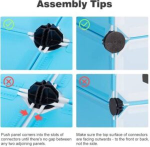 Description: Save space and store all items on a shelf Ideal for any living room, bedroom or small space, such as a full bedroom, this shelf provides ample space to store toys, blankets, clothes, shoes and other items to keep them tidy, tidy and decluator in any space. No more clothes and toys scattered throughout the room! Create your own storage solutions in an easy way With quick lock, multi-angle connectors, you can easily join the panels in a cube and join the cubes in a larger shelf. Use all stacked cubes for greater storage capacity or use it separately to order different items. Eco-friendly and state-of-the-art materials The panels are free of harmful chemicals such as formaldehyde to ensure that you and your families live in a healthy environment! Its frames are made of steel to allow each cube to hold up to 4.5 kg! Wear-resistant plastic connectors are made of high quality plastic to securely join the panels, making the shelf less likely to wobble. Note: Plastic panels may bend slightly when loaded, but it is a normal phenomenon. Please keep an eye on children when you are near the unit. PACKAGE CONTENT: Material type: – Resin sheet panels – Steel frame – ABS connectors Components: – Square Panels (14″” x 14″ / 35cm x 35cm): 29 pcs – ABS connectors: 32 pcs -Hanger: 2 pc -Door Magnets: 9-10 pcs – Installation manual: 1 pc Youtube Assembly link – https://www.youtube.com/watch?v=lAqGGI477eM